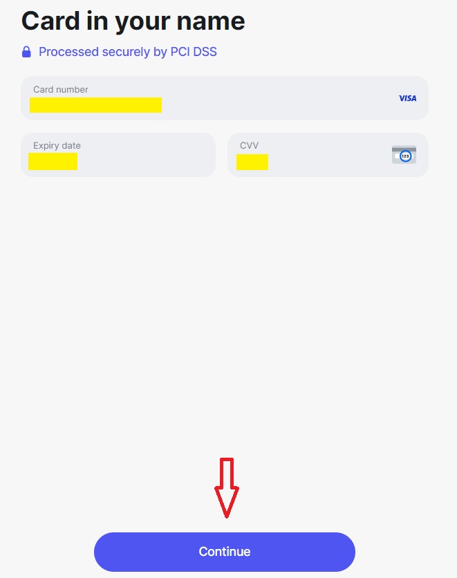 - Στη συνέχεια θα πρέπει να πληκτρολογήσετε τα στοιχεία της κάρτας σας, και να πατήσετε την εντολή ”Continue” (Δες πιο κάτω, φωτογραφία 2)